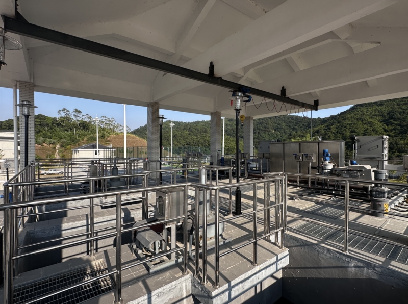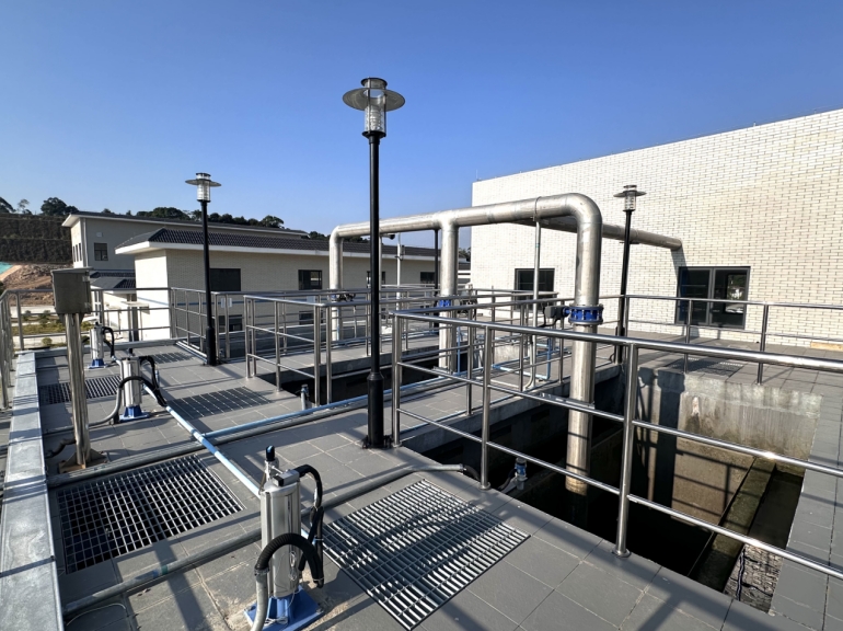 该项目位于广西防城港市防城区,设计近期处理污水规模为0.5万m³/d,远期可达5万m³/d,项目主要构筑物包括粗格栅及提升泵站(近期设置于厂外、远期设置于厂内)、细格栅及旋流沉砂池、改良Bardenpho生物池、二沉池、中途提升泵站、磁混凝高效沉淀池、反硝化深床滤池、紫外消毒渠、巴氏计量槽、尾水提升泵站。生产辅助用房:脱水机房、鼓风机房、配电间、水质监测间、发电机房、污泥堆棚等。沃尔德斯作为项目设备总包方,全面负责了所有工艺段的方案设计、设备供货、安装、调试及售后服务等工作。项目于2024年6月正式通水运行,出水水质达地表准Ⅳ类水标准。